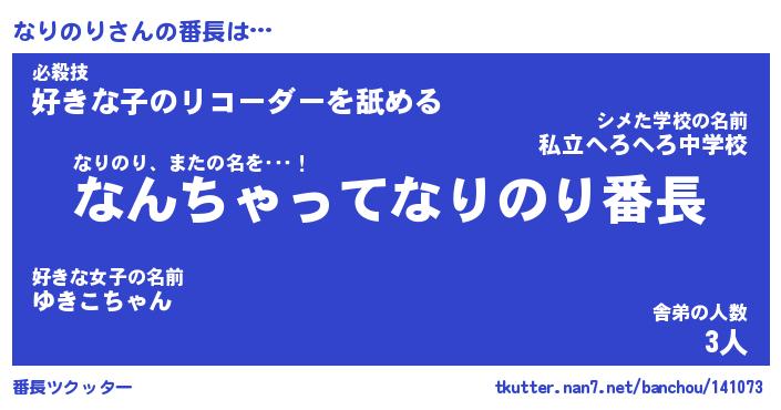 | 男性向けラノベタイトル風あだ名 | 『なりのりの憂鬱』 |
