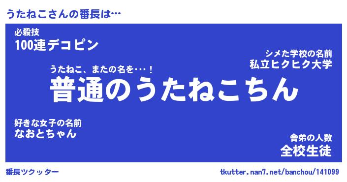 | 欧米人風あだ名 | 『マイケルうたねこ』『ウサインうたねこ』 |