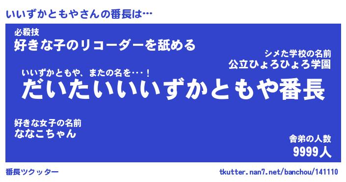 | 男性向けラノベタイトル風あだ名 | 『いいずかともやの憂鬱』 |