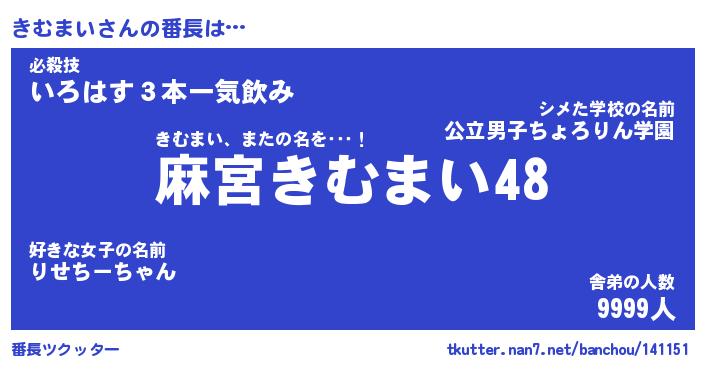 | 意味不明あだ名 | 『ペロリンきむまい』『永久保存きむまい』 |