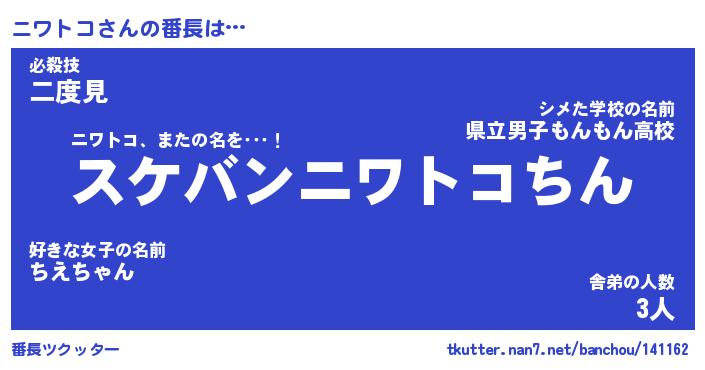 | ヒーロー風カッコイイあだ名 | 『スーパーニワトコ』『魔戒騎士ニワ』 |