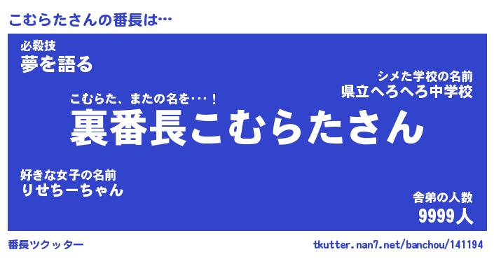 | 肩書あだ名 | 『こむらた社長令嬢』『こむらた総理大臣』 |