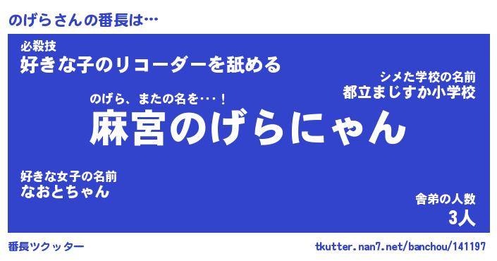 | ヘコむあだ名 | 『のげにゅー』『酢こんぶ』『のげを』 |