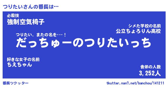 | ピコ太郎風あだ名 | 『ツコ一郎』『ピツ二郎』『ツリ三郎』 |