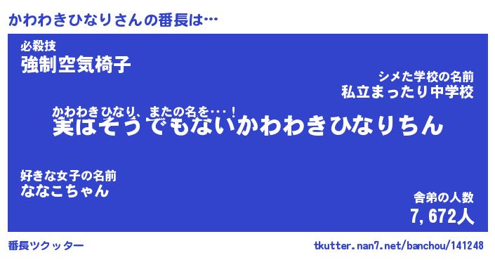 | 胡散臭い通販商品みたいなあだ名 | 『億万長者になれる水晶球…その名も「かわわきひなり」』 |