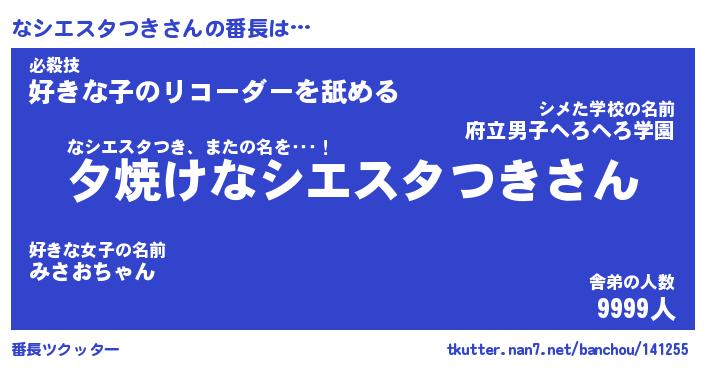 | 男性向けラノベタイトル風あだ名 | 『ナシエスタツキアートオンライン』 |