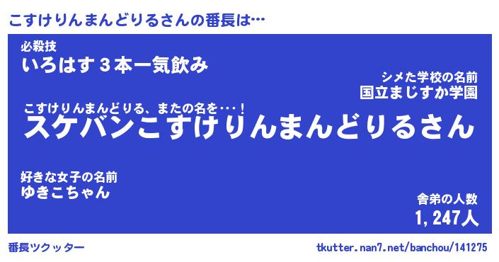 | 欧米人風あだ名 | 『マイケルこすけりんまんどりる』 |
