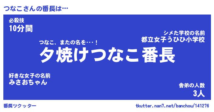 | 2回繰り返すあだ名 | 『つなつな』『つつなな』『おやおや』 |