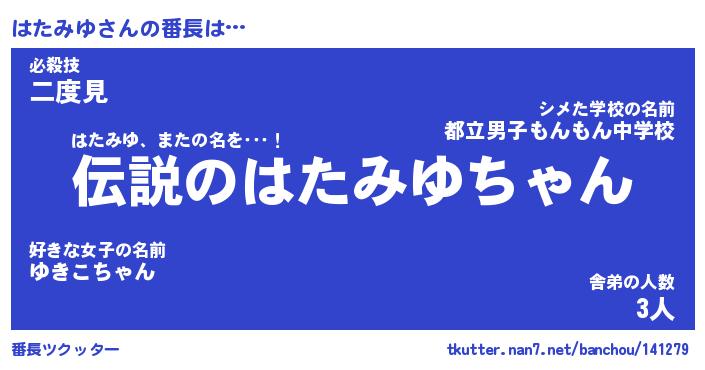| 伝説のあだ名 | 『伝説のスナイパーはたみゆ』 |