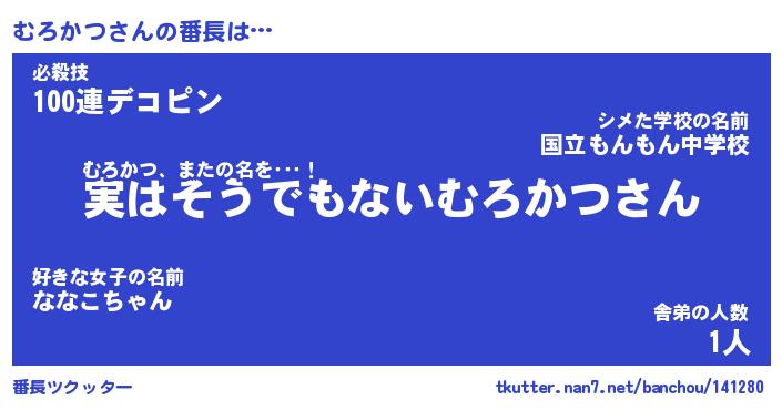 | 2回繰り返すあだ名 | 『むろむろ』『むむろろ』『あんあん』 |