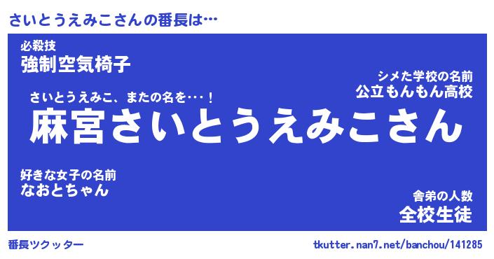| 欧米人風あだ名 | 『マイケルさいとうえみこ』 |