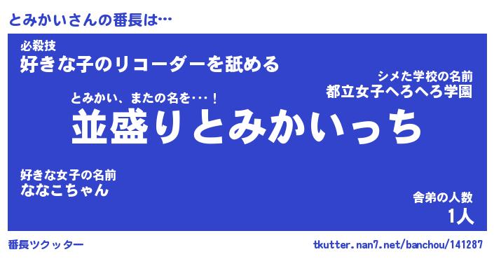 | 意味不明あだ名 | 『ペロリンとみかい』『永久保存とみかい』 |