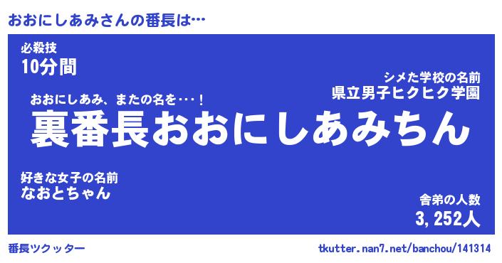 | ヒーロー風カッコイイあだ名 | 『スーパーオオニシアミ』『幻影騎士オオ』 |