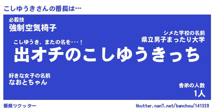 | ファンタジー風あだ名 | 『コシフェル』『エターナルコシユウキー』 |