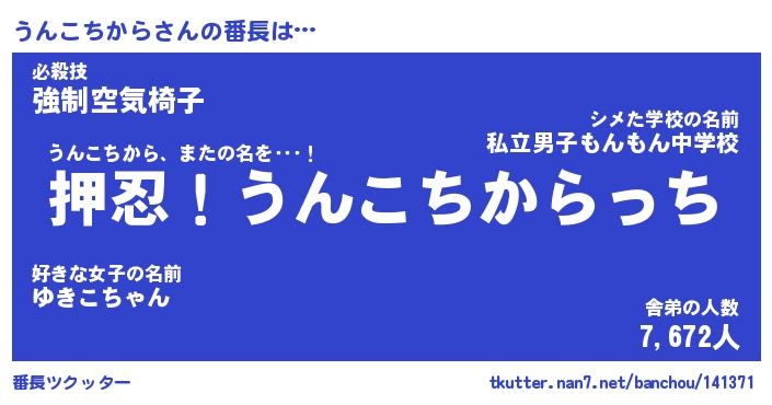 | 肩書あだ名 | 『うんこちから御曹司』 |