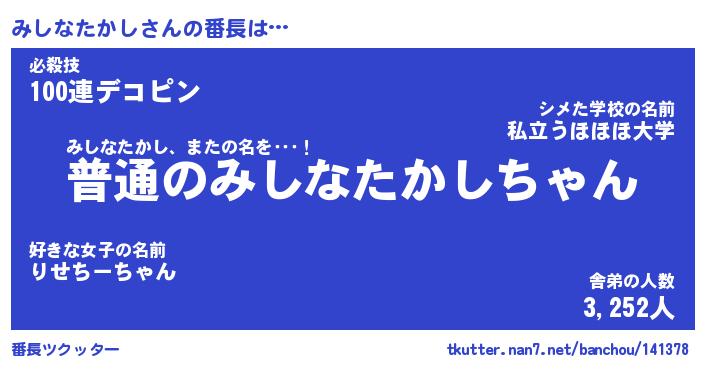 | 肩書あだ名 | 『みしなたかしCEO』『みしなたかし大統領』 |