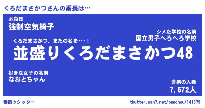 | ヘコむあだ名 | 『くろもー』『なまこ酢』『くろを』 |