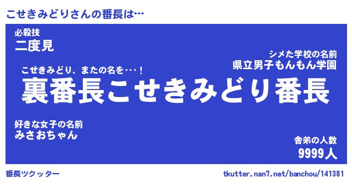 | ヒーロー風カッコイイあだ名 | 『スーパーコセキミドリ』『炎刃騎士コセ』 |