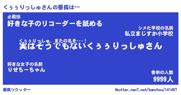 | ヒーロー風カッコイイあだ名 | 『スーパークゥゥリッシュ』 |