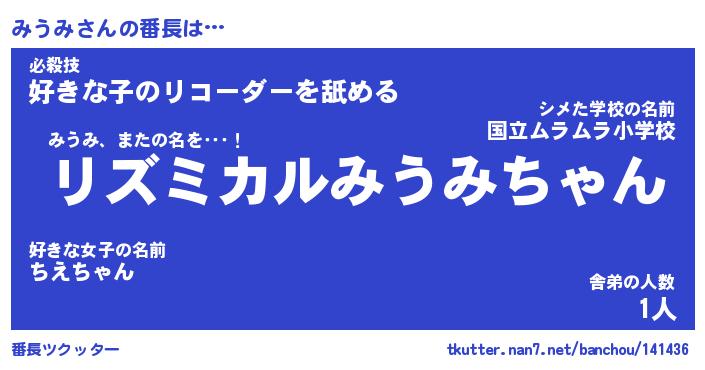 | 2回繰り返すあだ名 | 『みうみう』『みみうう』『いらいら』 |
