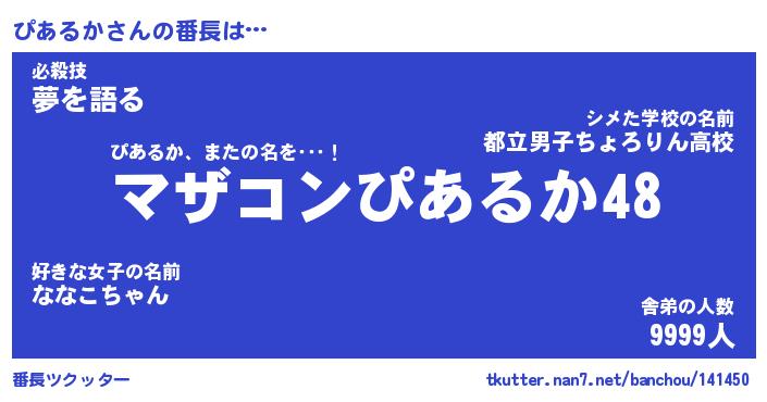 | 意味不明あだ名 | 『ペロリンぴあるか』『永久保存ぴあるか』 |