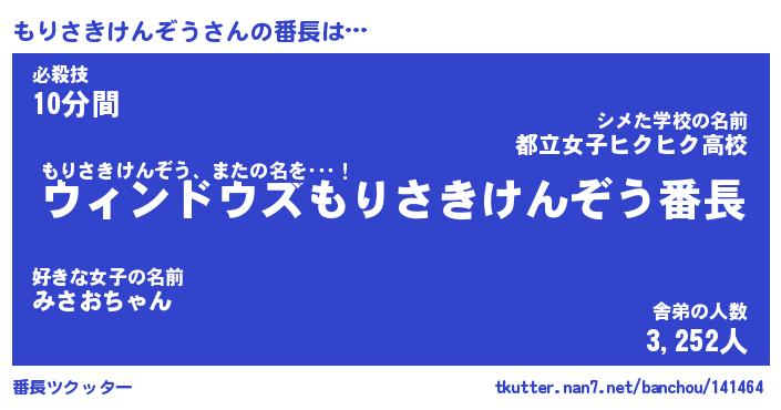 | 男性向けラノベタイトル風あだ名 | 『もりさきけんぞうの憂鬱』 |