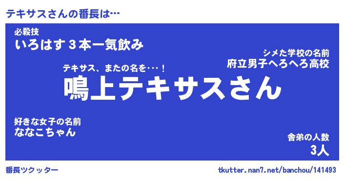 | ヒーロー風カッコイイあだ名 | 『スーパーテキサス』『魔戒騎士テキ』 |