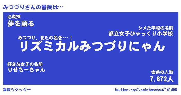 | ファンタジー風あだ名 | 『ミツフェル』『エターナルミツヅリー』 |
