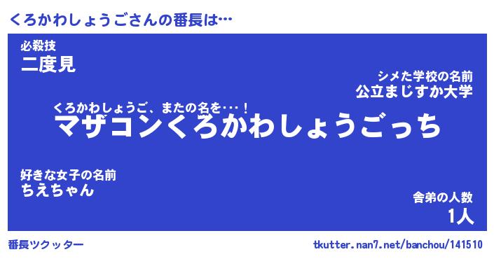 | 意味不明あだ名 | 『ペロリンくろかわしょうご』 |