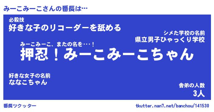 | 肩書あだ名 | 『みーこみーこ社長』『みーこみーこ班長』 |