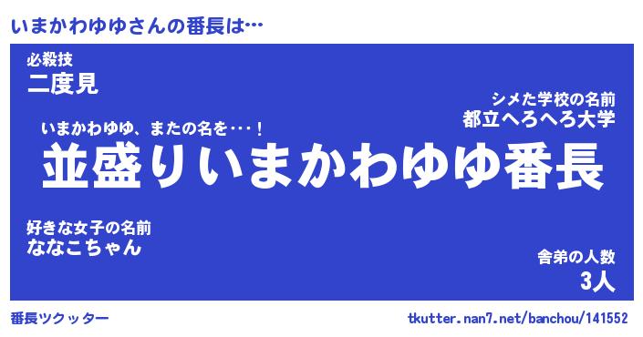 | ヒーロー風カッコイイあだ名 | 『スーパーイマカワユユ』『魔戒騎士イマ』 |