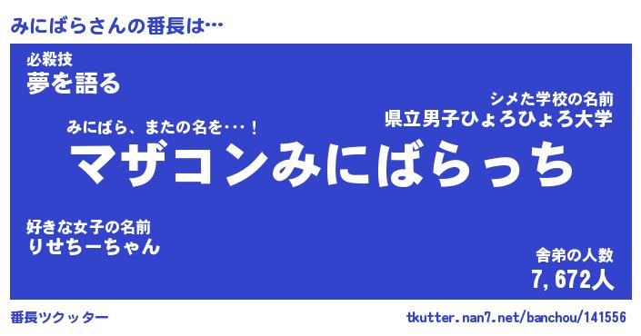 | ヘコむあだ名 | 『みにふぇ~』『牛乳』『みにっちょ』 |