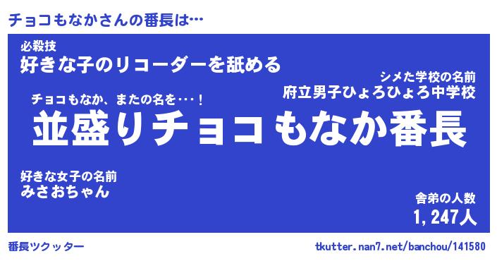 | 2回繰り返すあだ名 | 『チョチョ』『チチョョ』『にたにた』 |