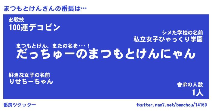 | 男性向けラノベタイトル風あだ名 | 『まつもとけんの憂鬱』 |