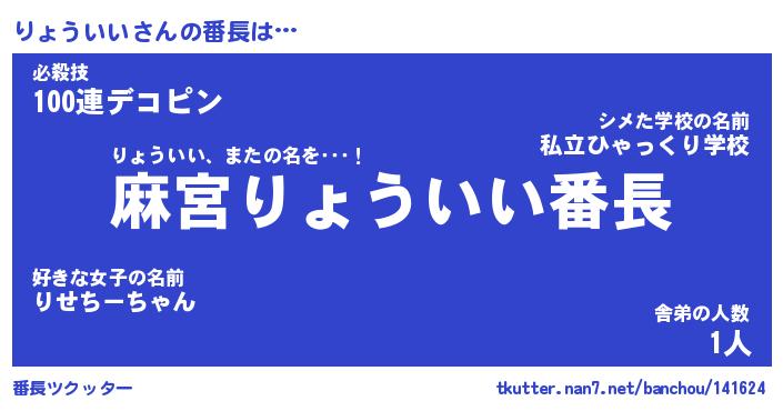| ファンタジー風あだ名 | 『リョフェル』『エターナルリョウイイー』 |
