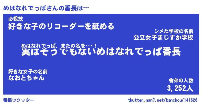 | ヘコむあだ名 | 『めはもー』『酢こんぶ』 |