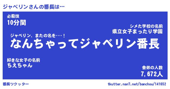 | ファンタジー風あだ名 | 『ジャフェル』『エターナルジャベリンー』 |