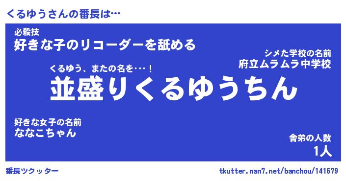 | 意味不明あだ名 | 『ペロリンくるゆう』『永久保存くるゆう』 |