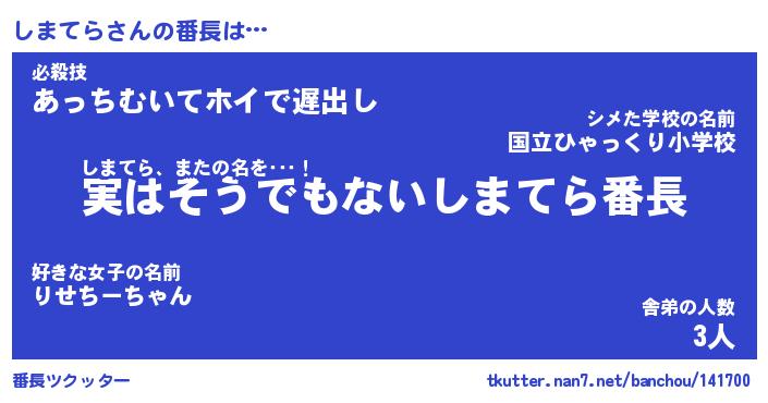 | 意味不明あだ名 | 『ペロリンしまてら』『永久保存しまてら』 |