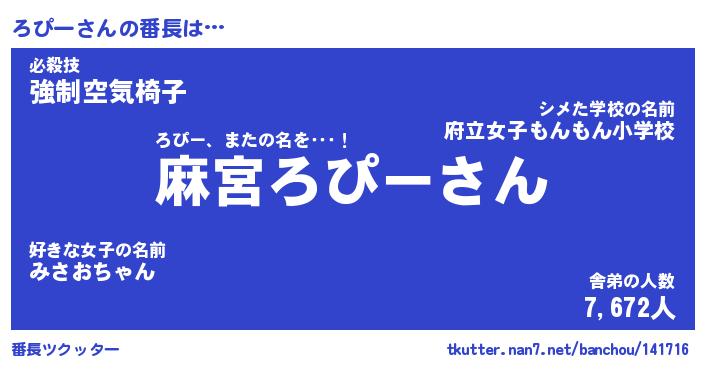 | ヘコむあだ名 | 『ろぴっふぃ~』『牛乳』『ろぴ太郎』 |