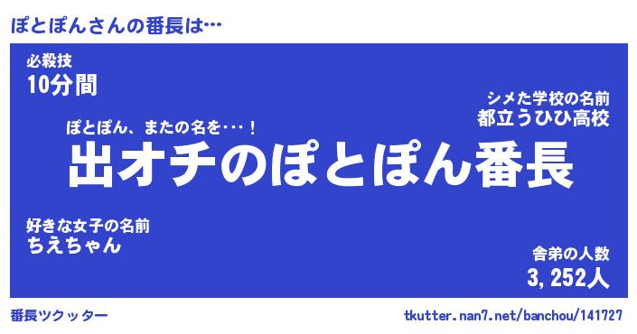 | ヘコむあだ名 | 『ぽとにゅー』『牛乳』『ぽとお』 |