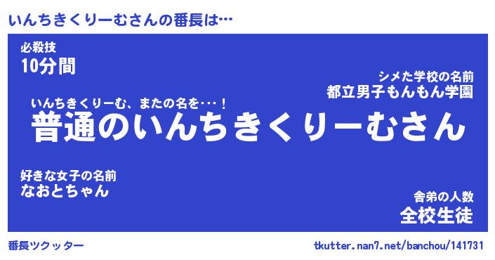 | ヘコむあだ名 | 『いんにー』『牛乳』『いんっちょ』 |