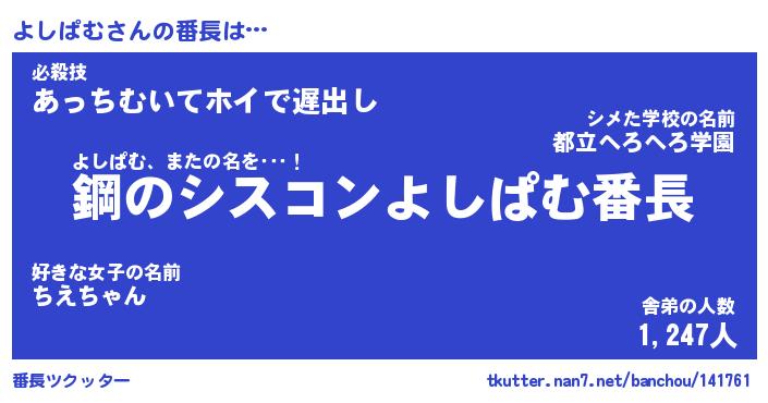 | 肩書あだ名 | 『よしぱむ店長』『よしぱむ国家主席』 |
