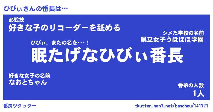 | ヘコむあだ名 | 『ひびもー』『酢こんぶ』『ひびお』 |
