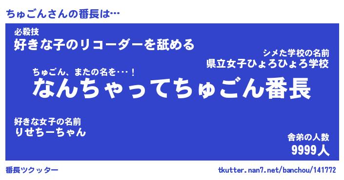 | 意味不明あだ名 | 『ペロリンちゅごん』『永久保存ちゅごん』 |
