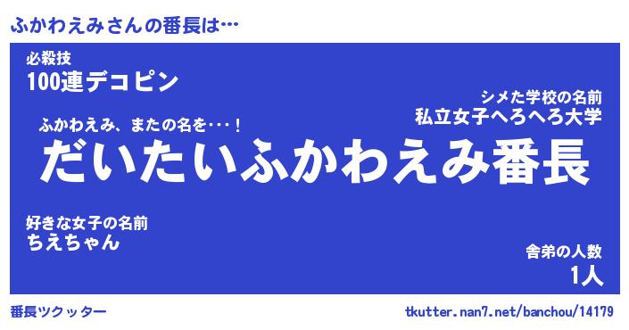 | ヘコむあだ名 | 『ふかにゅー』『つくし』『ふかっ子』 |
