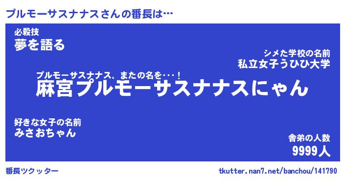 | 男性向けラノベタイトル風あだ名 | 『プルモーサスナナスアートオンライン』 |