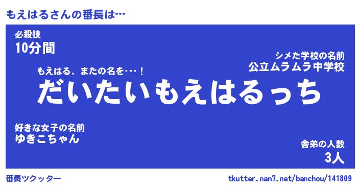 | 意味不明あだ名 | 『ペロリンもえはる』『永久保存もえはる』 |