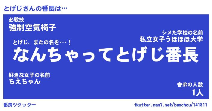 | 意味不明あだ名 | 『ペロリンとげじ』『とげじフォーエバー』 |
