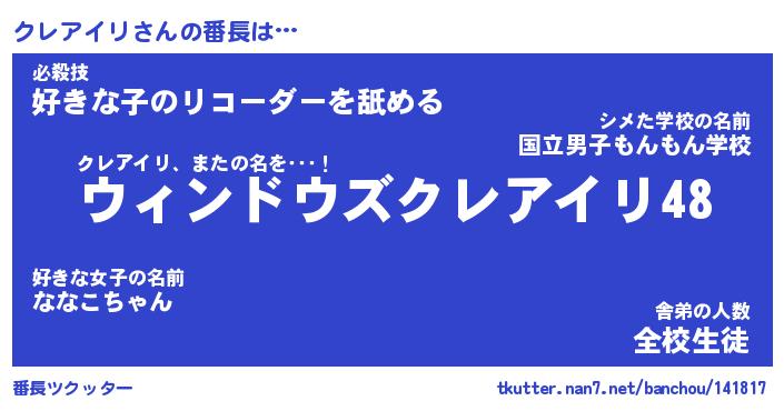 | 肩書あだ名 | 『クレアイリ社長』『クレアイリ総理大臣』 |